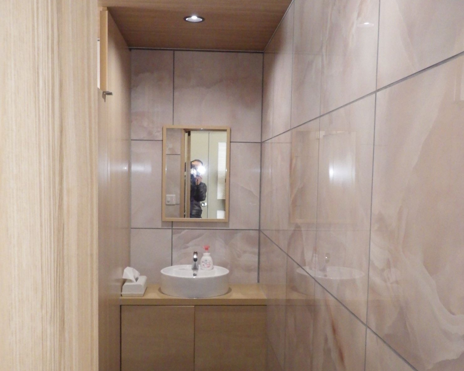 まるでホテルのパウダールームのような、上品で落ち着いた雰囲気に仕上がっていますね。