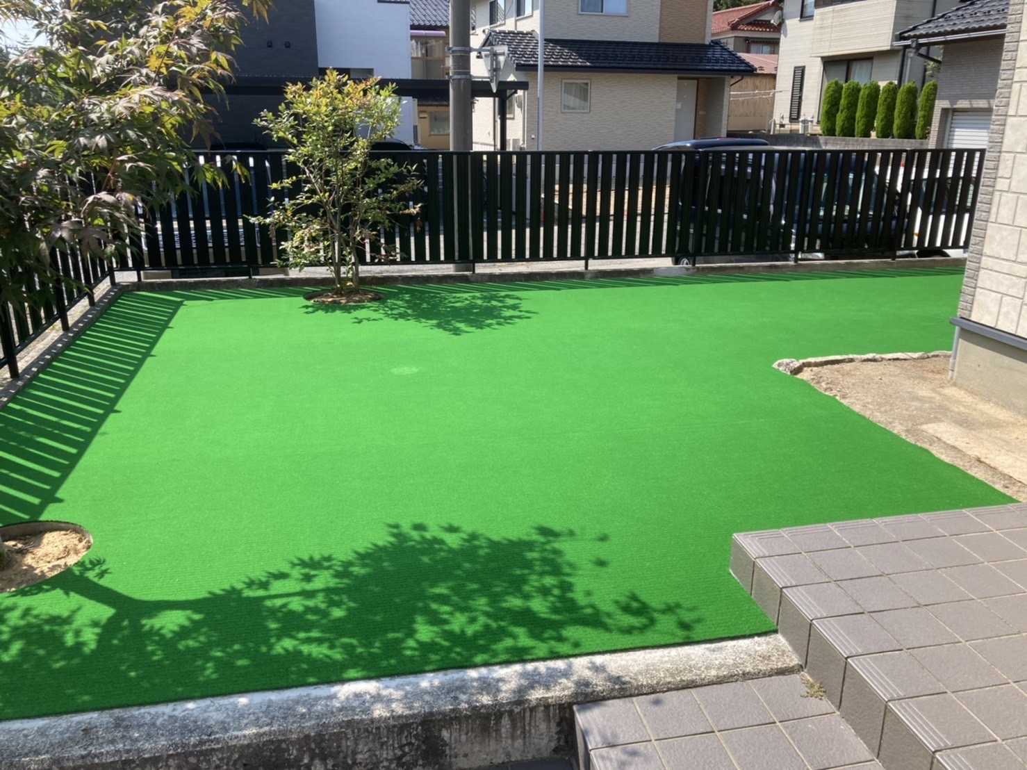 先日能美市S様邸で、お庭の人工芝敷工事をさせていただきました。